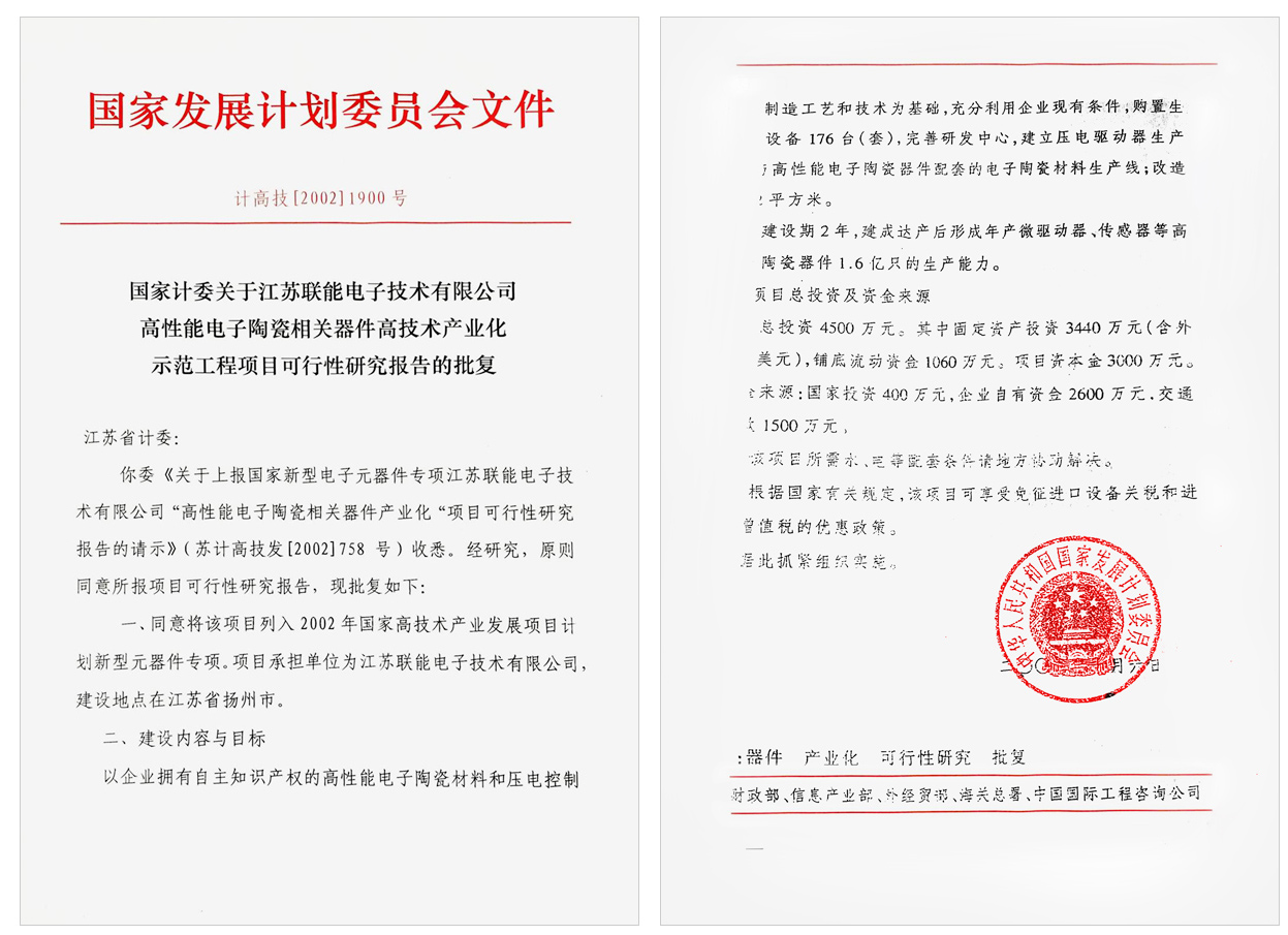批準(zhǔn)為“國家級高性能壓電材料產(chǎn)業(yè)化示范工程”,致力于高性能壓電陶瓷的研究和應(yīng)用開發(fā)。