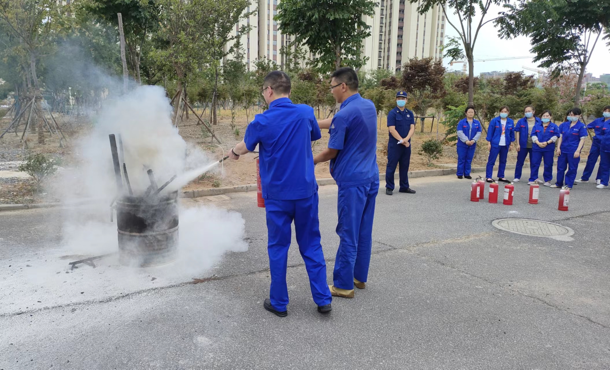 在認(rèn)真聽講及觀摩后,各位員工親自體驗(yàn)了現(xiàn)場(chǎng)滅火的過(guò)程,面對(duì)熊熊燃燒的火堆,表現(xiàn)十分積極勇敢,按照滅火的步驟和方法將火堆燃起的濃煙大火迅速撲滅。在演習(xí)中,每一位員工也都親自體驗(yàn)了如何正確使用滅火器,以及發(fā)生火災(zāi)時(shí)如何采取應(yīng)急措施。通過(guò)此次消防演練,他們掌握了滅火器材的使用方法,同時(shí)也提高了員工應(yīng)對(duì)突發(fā)事件的應(yīng)急處理能力。